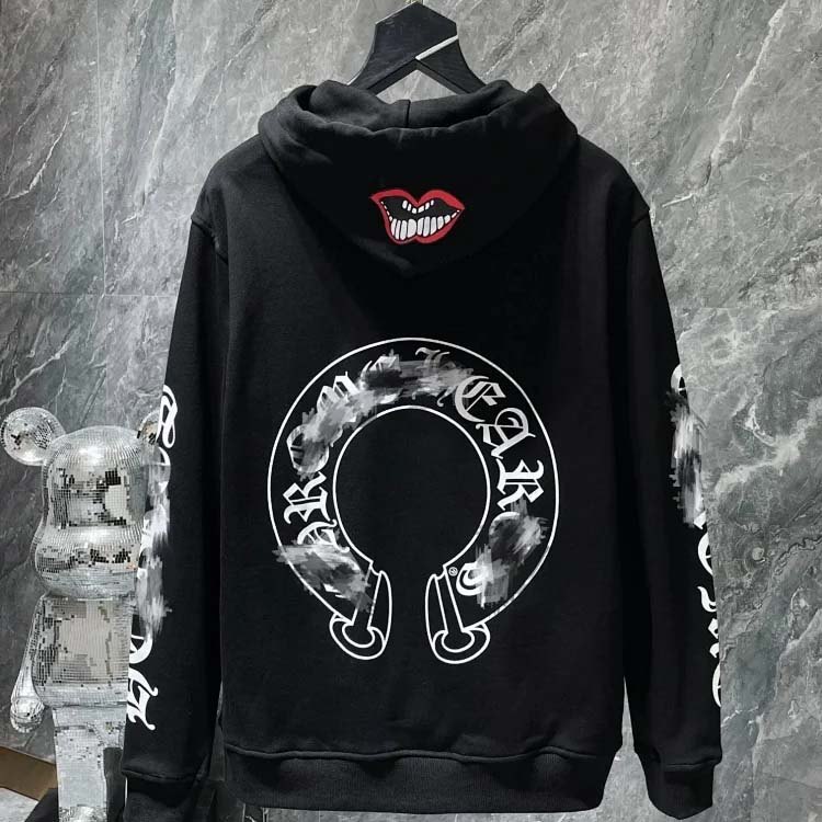 Chrome Hearts New Pure Cotton Cross American Horseshoe Printed Hooded Loose Sweatshirt-2524